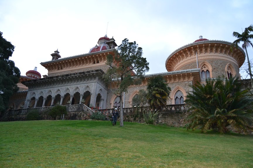 James Cook, 1º Visconde de Monserrate, adquiriu o espaço em 1856, já depois de um outro inglês (Wiliam Beckford) ter começado a criar o jardim. Cook desenvolveu-o e aplicou-se no palácio. Este, residência de verão da família Cook, é um misto de estilos, cantos e recantos, colunas, arcos, inspiração gótica, mudéjar, um estilo eclético só possível no espírito romântico. Esta excêntrica mansão passou a ser propriedade do governo português em 1949 (tempo depois de a família tudo ter vendido), para ficar ao abandono meio século, só em 2008 começaram as obras de reconstrução, ainda longe de concluídas. O espaço exterior, jardins e afins, já reluzem, mas o palácio vai andando, morosamente, até porque, o estuque em madeira trabalhado de tudo quanto é parede e tecto, deve demorar eternidades. Na cave, os azulejos azuis e brancos já reluzem e o fogão dos cozinhados da família Cook ainda lá está... No piso térreo, reluz a Biblioteca e a sala de Música com um piano de cauda. A sala de jantar, a de Bilhar ainda estão em fase de restauro. Do 1º andar apenas se olha cá debaixo até à cúpula imensa do átrio principal, imaginando-se os quartos e os aposentos de Mr. Cook... Das mobílias nada resta, a não ser um registo em vídeo e em fotografias.