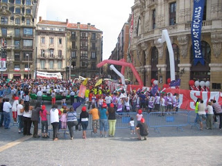 No burgo velho começava uma festa anual. Frente à Câmara, centenas de pessoas. Depois dos discursos os espanhóis lançam as suas alegrias ao vento: cidra, ovos, farinha e balões. É a loucura, as tapas, os risos altos, o barulho, as bebedeiras…