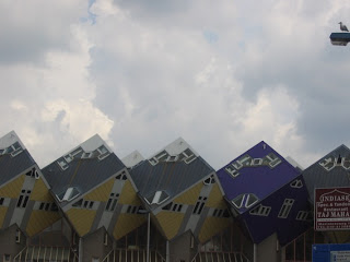 Paisagem completamente diferente a desta cidade: arquitectura moderna, construções invulgares como as casas-cubos.