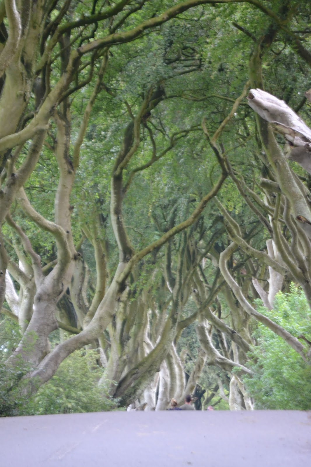 local onde os braços das árvores formam um túnel misterioso. Para-se um pouco